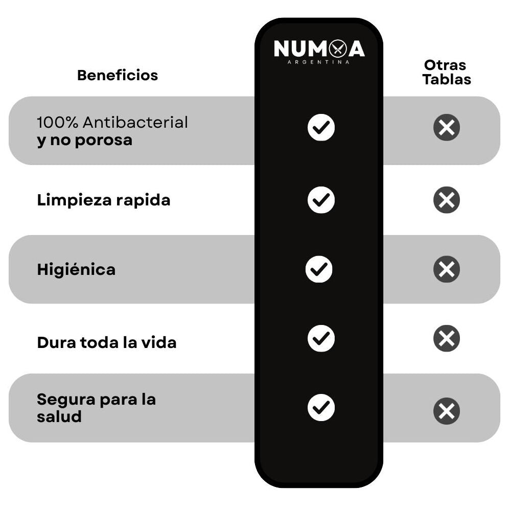 Libre de químicos tóxicos. Sin químicos dañinos como BPA y ftalatos, esta tabla garantiza que tus alimentos permanezcan seguros y sin contaminarse.