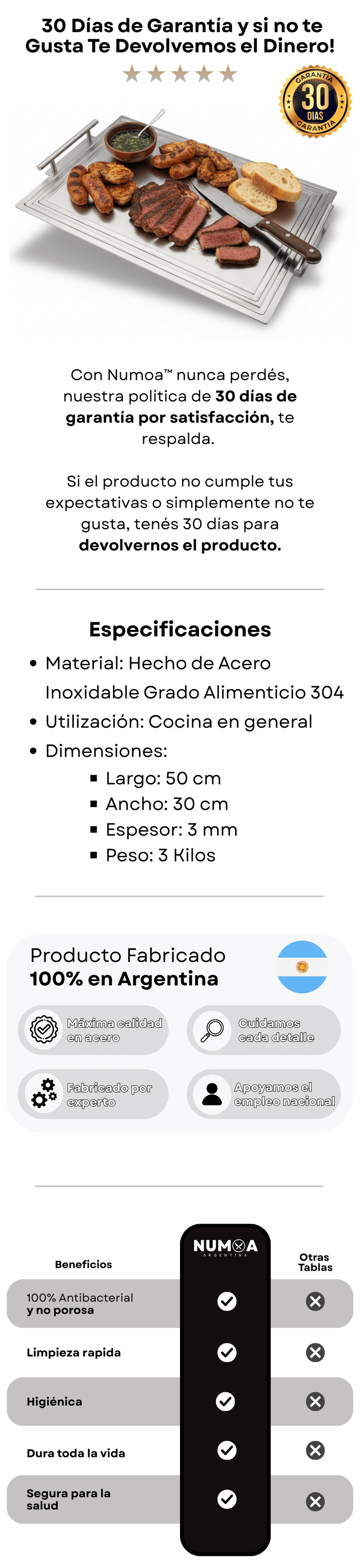 Tabla Parrillera "Campeones" de Acero Inoxidable 304